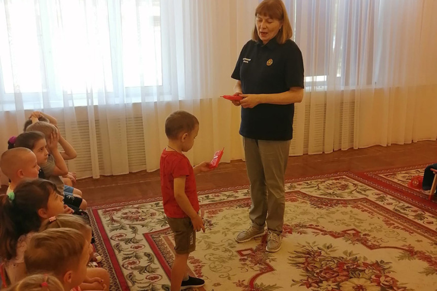 В Смоленске сотрудники Смоленского городского отделения Всероссийского добровольного пожарного общества провели интересный урок для малышей, подробно рассказав о действиях в условиях пожара или сильного задымления. Особое внимание на уроке было уделено правилам обращения с огнём и мерам предосторожности. Детям показали специальный учебный фильм, наглядно демонстрирующий опасность неправильного обращения с открытым пламенем. После показа фильма малыши приняли участие в увлекательной игре «Самый быстрый, ловкий и умелый». Цель игры заключалась в тренировке скорости надевания специальной экипировки пожарного. Завершилось мероприятие обещаниями воспитанников соблюдать меры предосторожности и распределением памяток и сувениров от сотрудников ВДПО.