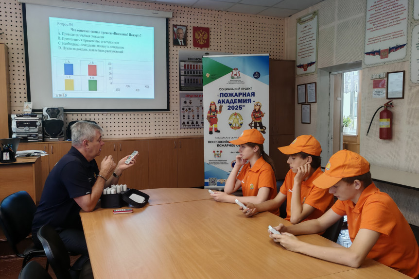 115 смоленских школьников, вошедших в фокус-группу социального проекта «Пожарная академия – 2025» приняли участие в тестировании по пожарной безопасности с интерактивной системой голосования Votum. Основной целью тестирования было определение текущего уровня знаний в области пожарной безопасности.