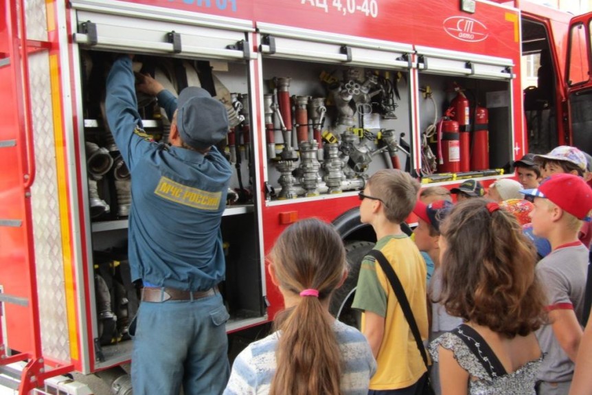 Далее ребятам рассказали об имеющихся в распоряжении пожарной части пожарных машинах, их устройстве, оборудовании, принципе работы и особенностях оснащения машин для тушения пожаров в городской и в сельской местности. Эта информация оказалась особенно интересной для учеников, так как она раскрывает весь современный технический арсенал пожаротушения. Дети задавали много вопросов, на которые охотно отвечали сотрудники ВДПО и пожарной охраны.