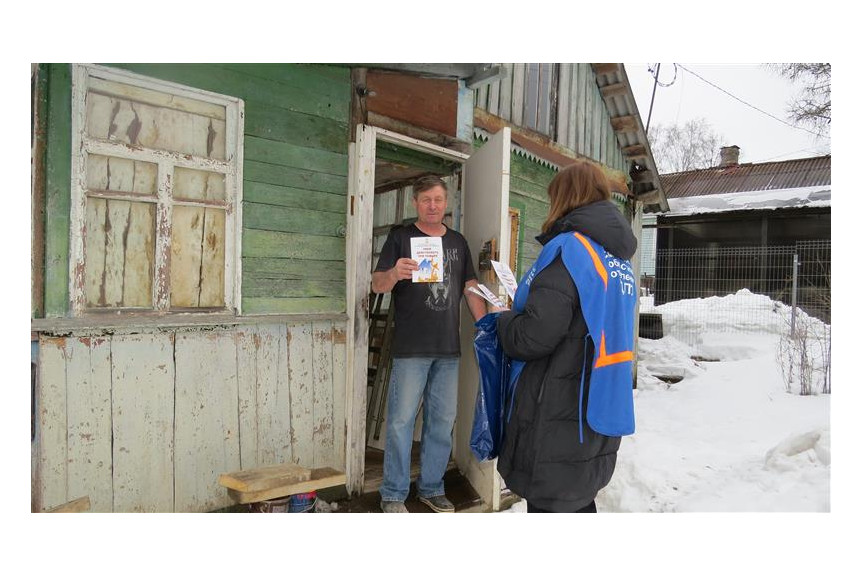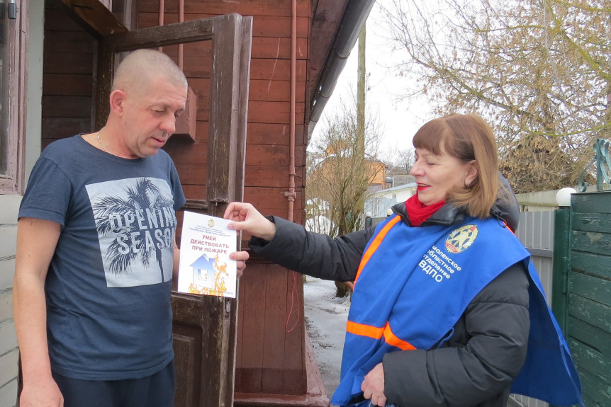 Беседуя с местными жителями, работники городского отделения вручают наглядно – изобразительную продукцию с полезными советами от областного отделения ВДПО.
